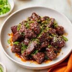 - Garnish and Serve: Transfer the short ribs to a serving plate. Sprinkle finely chopped spring onions and toasted white sesame seeds over the top for flavor and visual appeal. Serve immediately while hot.
