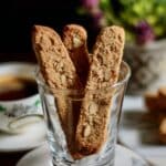 For holiday gatherings, I arrange biscotti in clear glass jars tied with rustic twine and a handwritten tag—that always gets compliments. You can also stand the slices upright in a decorative cup or basket lined with parchment paper for a charming coffee table snack display that’s as pretty as it is tasty.