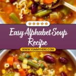 A comforting and classic Alphabet Soup featuring savory beef broth, fresh vegetables, and fun alphabet noodles, perfect for a family-friendly meal that’s both nutritious and easy to make.