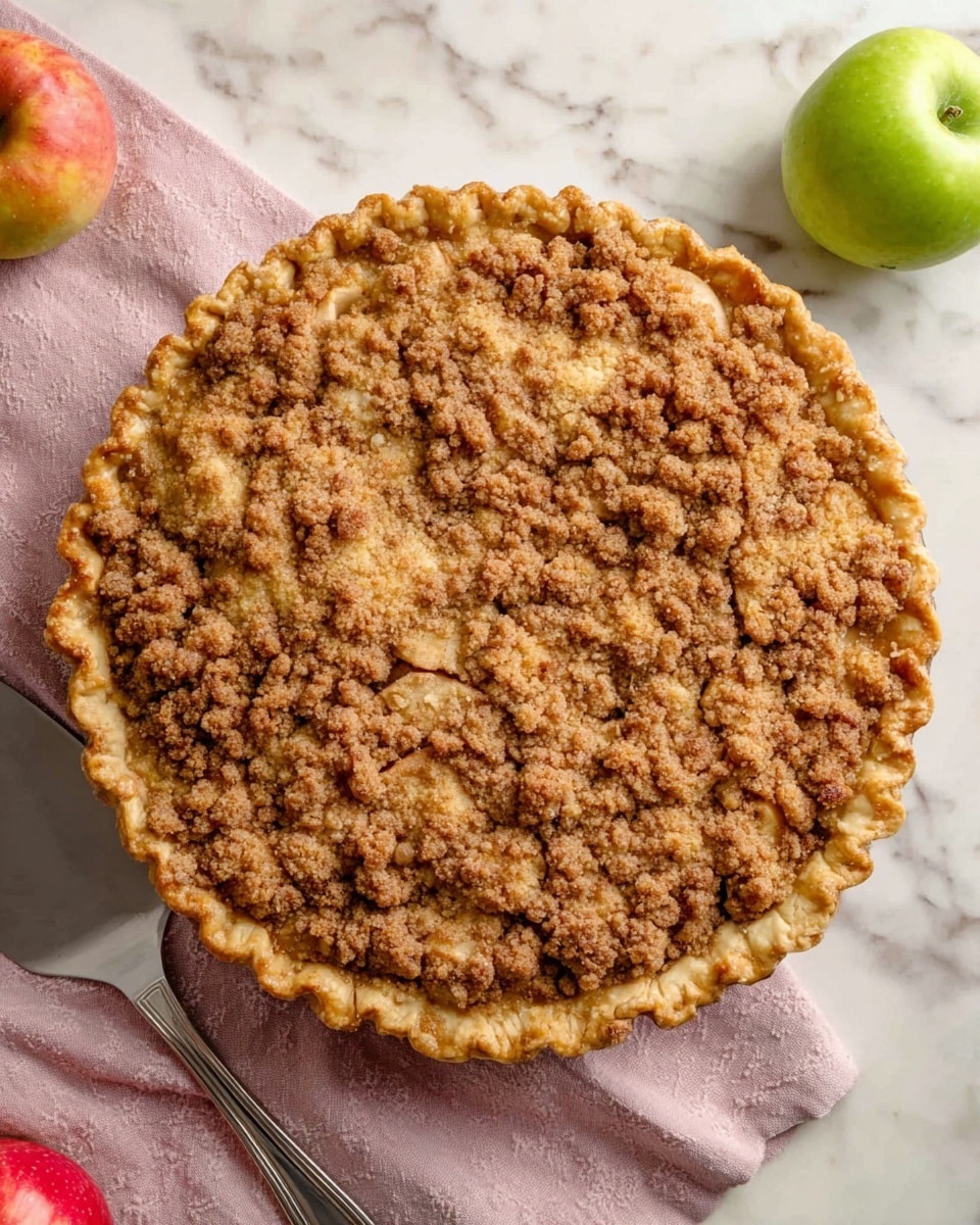 When you make this Apple Crumble Pie Recipe, you’ll find it’s surprisingly straightforward, yet it delivers that wow factor every time. The clouds of cinnamon-spiced crumble add an amazing texture contrast that makes this pie far more exciting than a plain apple filling. Plus, freezing the crust first and carefully balancing the moisture with flour and lemon juice keeps the crust crisp and the filling just right. Trust me, once you try this, it’ll be hard to go back to any other apple pie.