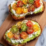 This Avocado Cottage Cheese Toast elevates the classic avocado toast with a delicious layering of creamy cottage cheese, juicy cherry tomatoes, and flavorful Everything But The Bagel seasoning on buttery sourdough bread. It’s a quick, nutritious, and satisfying breakfast or snack that combines creamy, tangy, and savory flavors in every bite.