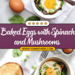 I generally don’t freeze this dish because the egg texture can get watery or rubbery upon reheating. However, you can pre-cook and freeze the mushroom-spinach mix to save time—just thaw and add fresh eggs before baking.