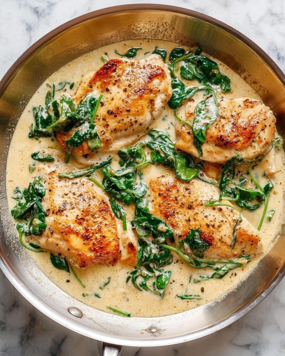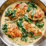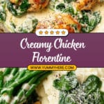 This Creamy Chicken Florentine features tender pan-fried chicken breasts smothered in a rich and flavorful garlic spinach white wine cream sauce. Ready in just 30 minutes, this elegant yet simple dish combines succulent chicken with fresh baby spinach and parmesan cheese for a deliciously satisfying meal.