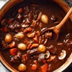 - Slow cooker method: I’ve done the entire recipe in a slow cooker with great success—just sear the beef and bacon first, then add everything and cook for 6-8 hours on low.