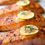 - Garnish and Serve: Remove the salmon from the oven and garnish with fresh thyme or parsley if you like. Serve immediately for a delicious and healthy meal.