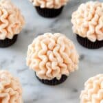With some practice, it takes me about 1–2 minutes per cupcake to pipe the brain design. Don’t rush—take your time so the details look neat and the frosting holds its shape.