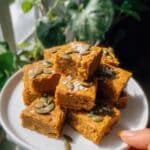 I usually store leftover brown butter pumpkin blondies in an airtight container at room temperature—it keeps them soft and moist for up to 4 days. If it’s warmer or you want them a bit more chilled and firmer, storing in the fridge is fine but I recommend bringing them back to room temp before eating.