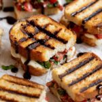For a party, I cut these sandwiches into smaller, bite-sized triangles and skewer with a toothpick topped with a cherry tomato or olive. It’s a super cute handheld appetizer that disappears fast! You can also serve with small bowls of balsamic glaze on the side for dipping fun.