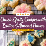 Classic Spritz Cookies made with butter, sugar, and almond extract, these delightful buttery cookies are perfect for pressing into festive shapes and decorating with colored sugar or candies. They bake up crisp-edged and tender inside in about 10 minutes, making them a traditional favorite especially during holidays.