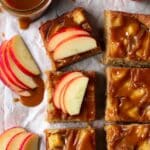 This Caramel Apple Cake is a moist and tender vanilla-scented brown sugar cake loaded with chopped tart apples and a touch of cinnamon, topped with a sweet cinnamon sugar sprinkle and a decadent salted caramel drizzle. Perfect for Fall, it combines soft apples with warm spices and rich caramel to create a comforting dessert that is easy to prepare in just one bowl and baked in the oven.