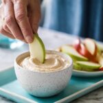 Once made, I keep any leftover dip covered tightly in the fridge for up to 3 days. It holds up well and stays creamy, but fresh apples are definitely best sliced fresh each time to avoid browning.