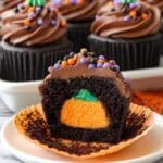 I always store leftover Cheesecake Stuffed Halloween Cupcakes in an airtight container in the fridge since the cheesecake filling needs to stay cool. They last about 3-4 days, and honestly, they’re still just as delicious the next day once warmed slightly to room temperature.