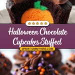 Delight in these Cheesecake Stuffed Halloween Cupcakes featuring creamy mini pumpkin cheesecakes nestled inside rich chocolate cupcakes, topped with a luscious chocolate ganache and festive Halloween sprinkles. Perfect for a spooky celebration, these treats combine a moist, coffee-infused chocolate cake with a decadent cheesecake surprise.