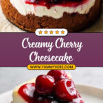 This Cherry Cheesecake features a rich and creamy vanilla cheesecake baked atop a crunchy biscoff cookie crust, finished with a luscious homemade sweet cherry topping made from fresh black cherries, sugar, lemon, and cornstarch. Perfectly balanced between sweet and tangy, this cheesecake is a delightful dessert ideal for special occasions or whenever you crave a decadent treat.