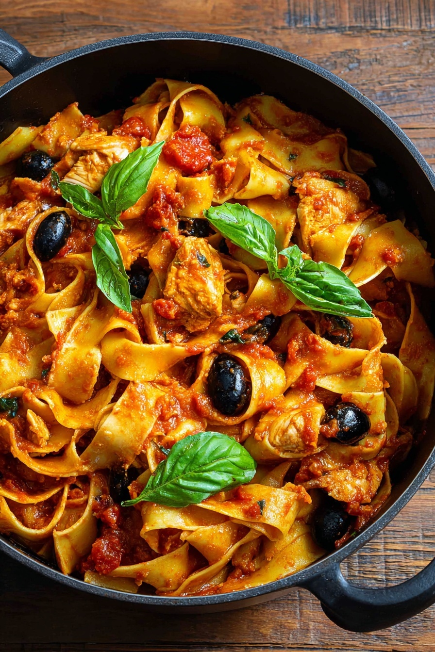 If you’re looking for a dish that hits all the right notes — rich, comforting, and packed with bold flavors — then I’m super excited to share this Chicken Cacciatore Pasta Recipe with you. Trust me, once you try it, you’ll see why my family and I keep coming back for seconds. It’s that perfect blend of tender chicken thighs, tangy tomato sauce, and briny olives tossed with silky pappardelle. Let’s dive in and get cooking!