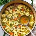 I recommend freezing the soup without the tortellini, because pasta can get soggy when frozen and reheated. Freeze the broth and chicken mixture for up to 3 months, and add fresh tortellini when you’re ready to eat.
