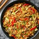 Chicken Yakisoba is a flavorful and hearty Japanese-inspired stir-fry dish featuring tender bite-sized chicken strips, chewy yakisoba noodles, and a vibrant mix of vegetables all tossed in a savory and slightly sweet sauce. Perfect for satisfying take-out cravings at home, this dish is quick to prepare and offers a delicious combination of textures and flavors.