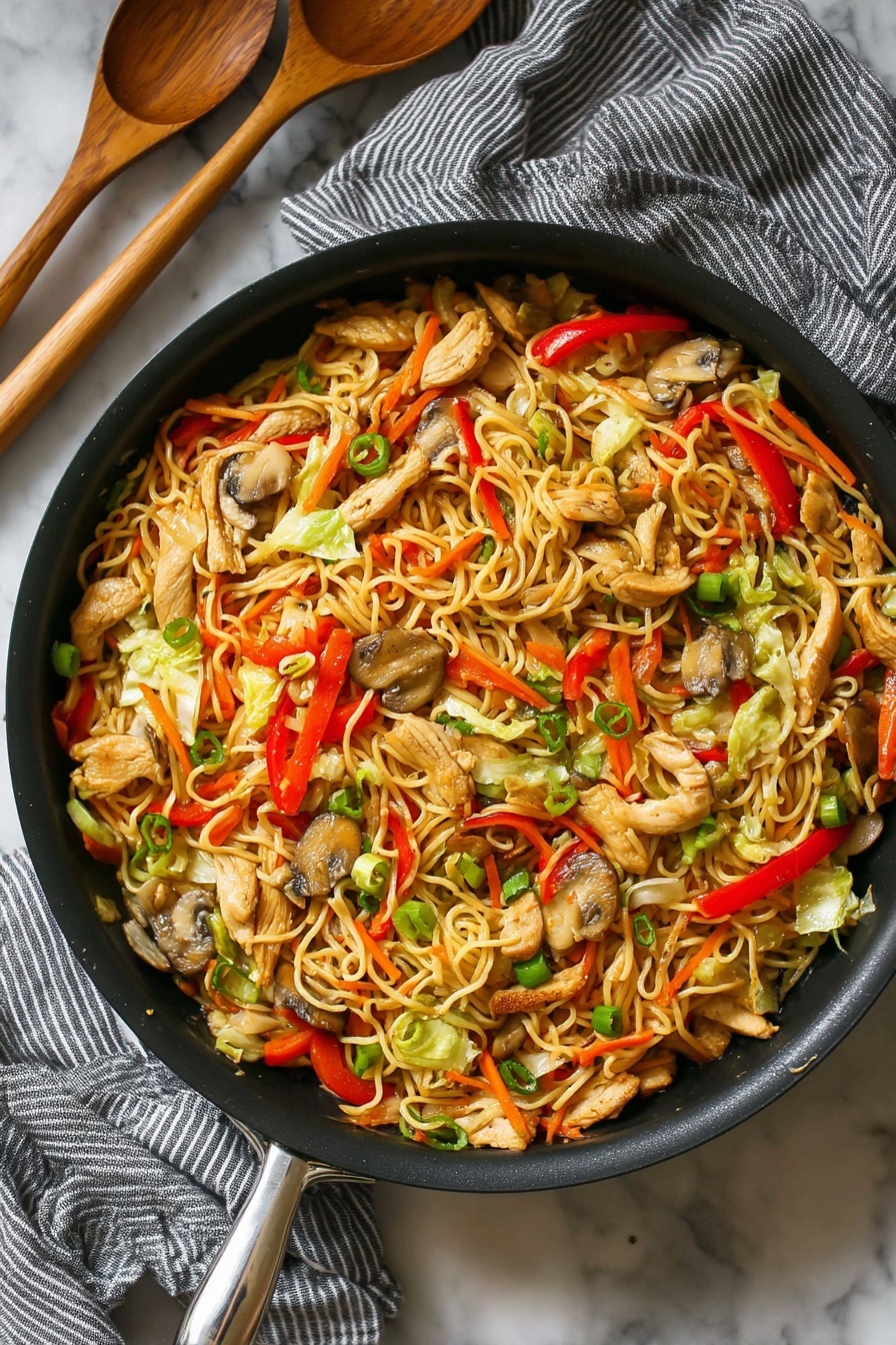Leftover Chicken Yakisoba Stir-Fry stores really well in an airtight container in the fridge for up to 3 days. I usually let it cool completely before sealing to prevent sogginess, which keeps the veggies crisp and the flavors fresh.