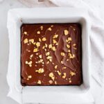 - Assemble the fudge: Pour the fudge mixture into the prepared baking dish and smooth the top with a spatula. Press the remaining ¼ cup walnuts evenly on top for added texture and visual appeal.