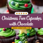 Delight in these festive Christmas Tree Cupcakes featuring a rich chocolate base topped with a creamy vanilla buttercream frosting dyed green and decorated to resemble charming Christmas trees, perfect for holiday celebrations.