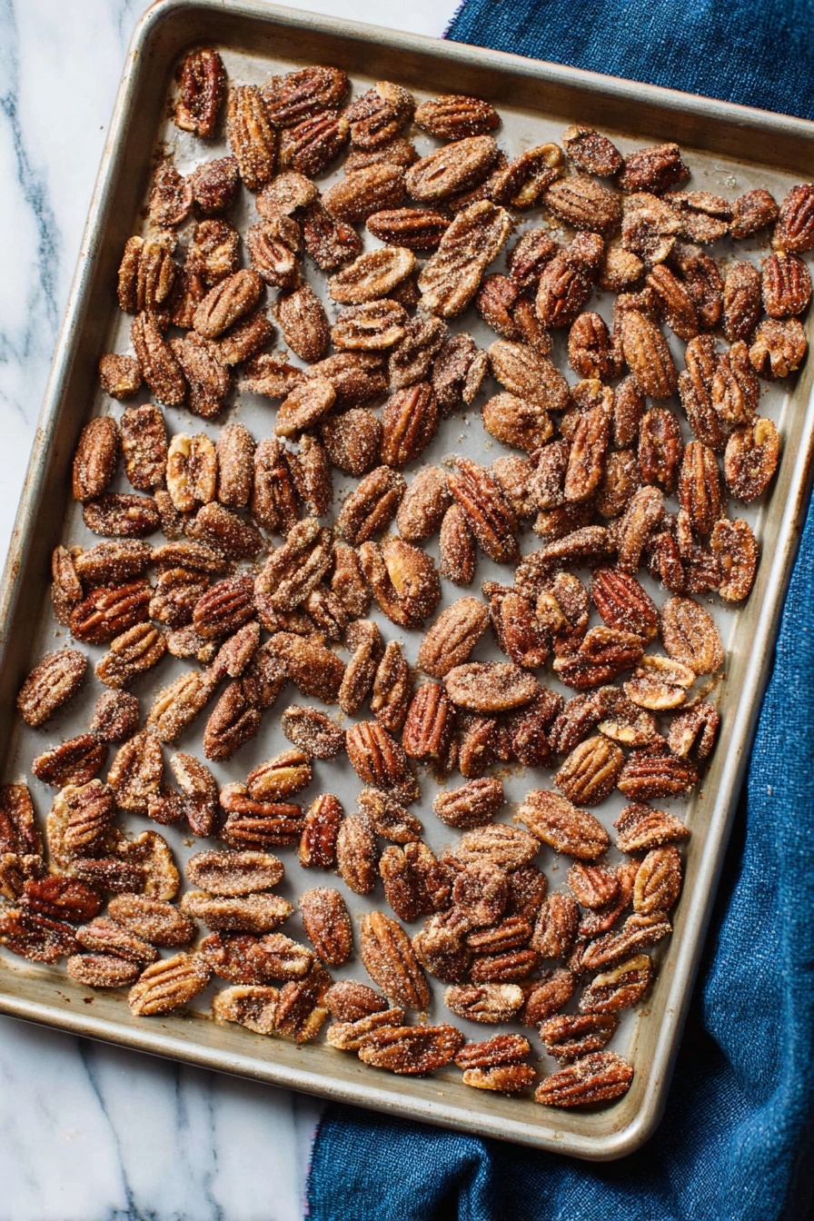 - Arrange and Bake: Spread the coated pecans in an even layer on the prepared baking sheet to ensure they cook evenly.