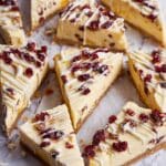 These Copycat Starbucks Cranberry Bliss Bars feature soft blondies packed with dried cranberries and white chocolate chips, topped with a luscious cream cheese frosting, orange zest, extra cranberries, and a drizzle of melted white chocolate. Perfect for a festive treat or holiday dessert with a delightful balance of tart and sweet flavors.