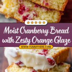 This Cranberry Bread with Orange Glaze is a moist and tender quick bread bursting with juicy fresh cranberries and bright orange flavor. The loaf is perfectly balanced with tangy cranberries and a sweet, zesty orange glaze, making it a delightful treat for breakfast, snack, or holiday gifting. The bread stays moist for days, making it an ideal homemade gift or festive addition to any gathering.