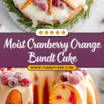 This Cranberry Orange Bundt Cake is a festive and elegant dessert that’s surprisingly easy to make. Moist and tender, it features fragrant orange zest and fresh cranberries baked into the cake, finished with a sweet orange glaze and sugared cranberries on top. Perfect for holiday gatherings, this no-mixer recipe delivers a beautiful, flavorful treat that looks like you spent hours preparing it.