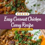 This Quick Coconut Chicken Curry is a comforting and flavourful dish featuring tender chicken pieces simmered in a rich, creamy coconut-based curry sauce. Enhanced with aromatic spices and finished with fresh coriander, it’s perfect for a cosy family dinner, served alongside basmati rice and warm naan bread with yoghurt and mango chutney for added zest.