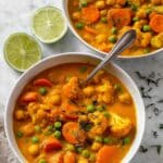 A hearty and comforting creamy chickpea and carrot curry made with coconut milk, tofu, and a blend of fresh vegetables and spices. This flavorful one-pot dish is perfect for a cozy meal that is both vegan and packed with protein and fiber.