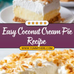 This Easy Coconut Cream Pie features a luscious and creamy coconut custard filling nestled in a flaky pre-baked pie crust, topped with lightly sweetened whipped cream and toasted coconut flakes. The pie combines the flavors of sweetened and unsweetened coconut with a smooth vanilla and coconut extract aroma, making it a delightful tropical dessert perfect for any occasion.