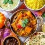 I love topping this curry with a handful of fresh coriander leaves and sometimes a squeeze of lemon juice for brightness. Toasted pumpkin seeds sprinkled on top add a delightful crunch and make for a pretty presentation if you’re serving guests.