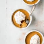 Eggs are essential for the custard’s silky texture and structure, so I don’t recommend skipping them. If you’re looking for an egg-free dessert, you might try a pumpkin pudding or mousse instead.