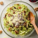 This Brussels Sprouts Salad with Apples, Cranberries, and Walnuts is a vibrant and healthy holiday salad featuring thinly sliced Brussels sprouts combined with tart Granny Smith apples, sweet dried cranberries, crunchy toasted walnuts, and tangy Pecorino Romano cheese. Tossed in a maple-sweetened apple cider vinegar dressing, the salad is refreshing, colorful, and perfect for a nutritious side dish any time of year.