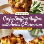 Crispy-Edged Stuffing Muffins, also known as Stuffins, are individual portions of classic Thanksgiving stuffing made with hearty sourdough bread, fresh herbs, garlic, and parmesan cheese. Each muffin is baked to achieve a deliciously crispy outside with a soft, tender center, perfect for serving alongside turkey and gravy during holiday dinners.