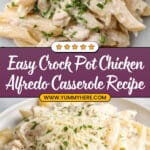 - This easy crock pot chicken Alfredo casserole is incredibly flavorful and convenient for busy days—prep in minutes and let the slow cooker do the work.