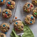 I usually don’t bother with fancy garnishes because these cookies are already so loaded, but a light dusting of powdered sugar or a drizzle of melted white chocolate can be lovely for special occasions. Sprinkle a few extra M&M’s on top before baking for that extra pop of color!