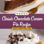 Classic Chocolate Cream Pie features a flaky homemade pie crust filled with rich, silky dark chocolate pudding, topped with a smooth whipped cream layer and garnished with chocolate shavings. This decadent dessert balances a crisp pastry shell with luscious chocolate filling, perfect for any special occasion or chocolate lover’s treat.