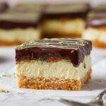 These Dubai Chocolate Cheesecake Bars combine a crunchy kataifi pistachio cream crust with a luscious, creamy cheesecake filling. Topped with additional kataifi pistachio and a smooth chocolate ganache, this dessert offers a perfect balance of crunchy, sweet, and salty flavors with a silky texture that is sure to impress.