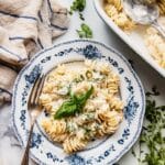 Right before serving, sprinkle some freshly grated Parmesan cheese and chopped herbs like parsley or basil for a fresh burst of flavor and a beautiful finish. This also gives it a slightly brighter taste that balances the creamy sauce.