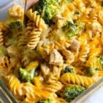 A comforting and hearty Chicken Noodle Casserole featuring tender rotini pasta, nutritious broccoli florets, and shredded chicken breast in a creamy cheddar cheese sauce. This easy-to-make baked casserole is perfect for a family dinner and combines a homemade cream sauce with wholesome ingredients for a satisfying dish.