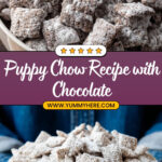 This Puppy Chow Recipe, also known as Muddy Buddies, is a quick and easy snack mix featuring crunchy Rice Chex cereal coated in a luscious blend of melted chocolate and creamy peanut butter, then dusted with powdered sugar for a sweet, irresistible treat perfect for sharing.