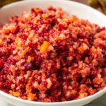 Grandma’s Cranberry Relish is a classic holiday side dish that combines fresh cranberries, navel orange, and Granny Smith apple with a touch of sugar and cinnamon. This old-fashioned recipe is quick to prepare using a food processor to achieve a perfect chunky but smooth texture. It’s refreshing, tangy, and sweet—ideal for Thanksgiving turkey or Christmas dinners.