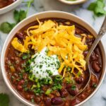 I’m all about those finishing touches that make chili feel special. I usually top mine with a cool scoop of sour cream or Greek yogurt to contrast the heat, some shredded cheddar or Monterey Jack cheese for melty goodness, chopped green onions for freshness, and a handful of crispy Fritos for that irresistible crunch. Cilantro adds a bright herbal note that I always reach for if I have it on hand.