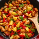 A flavorful and vibrant Sweet and Sour Chicken recipe featuring tender chicken pieces coated in cornstarch, sautéed with fresh bell peppers, onions, and juicy pineapple chunks, all tossed in a tangy homemade pineapple sauce. Perfect for serving over rice or Chinese noodles for a complete, satisfying meal.
