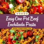This One Pot Beef Enchilada Pasta is a delicious and easy weeknight dinner that combines the bold flavors of enchilada sauce and taco seasoning with hearty ground beef and rotini pasta. It’s cooked all in one skillet, making cleanup a breeze while delivering a cheesy, comforting meal perfect for busy nights.