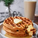 - Serve: Serve the warm waffles with maple syrup, butter, and a dusting of freshly ground nutmeg for a festive finish.