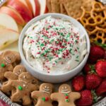 Finally, stir in half of your holiday sprinkles, then transfer the dip to your serving bowl and top it with the remaining 2 tablespoons for a festive look. Serve immediately alongside graham crackers, fresh fruit, or whatever dippers you love! It’s honestly so fun to watch guests dig in—it disappears fast!