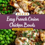 PrintFrench Onion Chicken Bowls with Rice and Peas Recipe