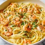 I store leftovers in an airtight container in the fridge—ideally within two hours of cooking. The garlic butter shrimp pasta stays delicious for up to 2 days. Just be mindful the pasta might soak up some sauce, so it won’t be as saucy as freshly made.